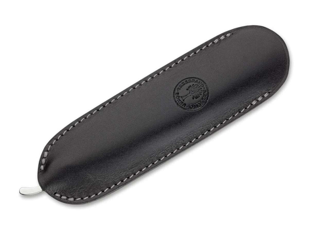 Elegance meets practicality with this exquisite leather sheath designed to securely transport Boker straight razors ranging from 4/8 to 7/8 inches in size. Crafted from genuine black leather, this wallet exudes a timeless charm and features an embossed Boker logo as a mark of quality. Your beloved razor deserves nothing... Read more