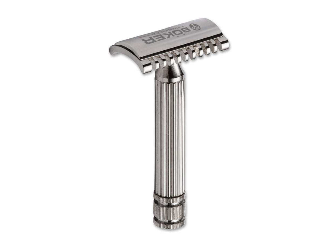 A premium safety razor with an open comb for skilled wet shavers. This open comb allows the shaving foam to flow off freely. The grip and tooth comb are made of solid brass and are crafted from a solid billet. The razor head is also made from solid brass. All... Read more