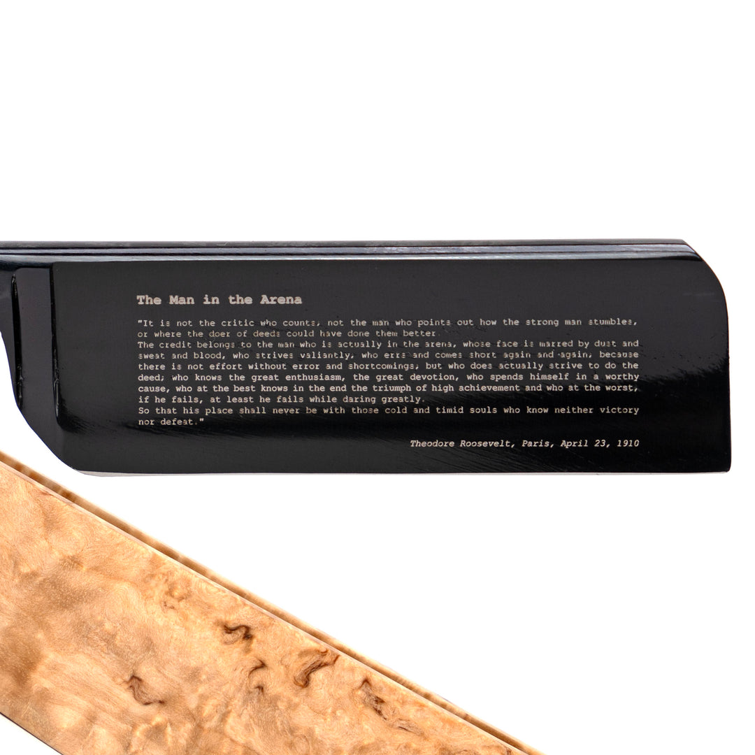 Introducing the NEW ARENA SAVANNAH razor. A full-inch blade, dark as night and engraved with a proud lion embodied with courage. This courage is displayed by the blade itself, inspired by Theodore Roosevelt's speech, "Citizenship in a Republic." An excerpt from this speech, famously known as "The Man in the... Read more