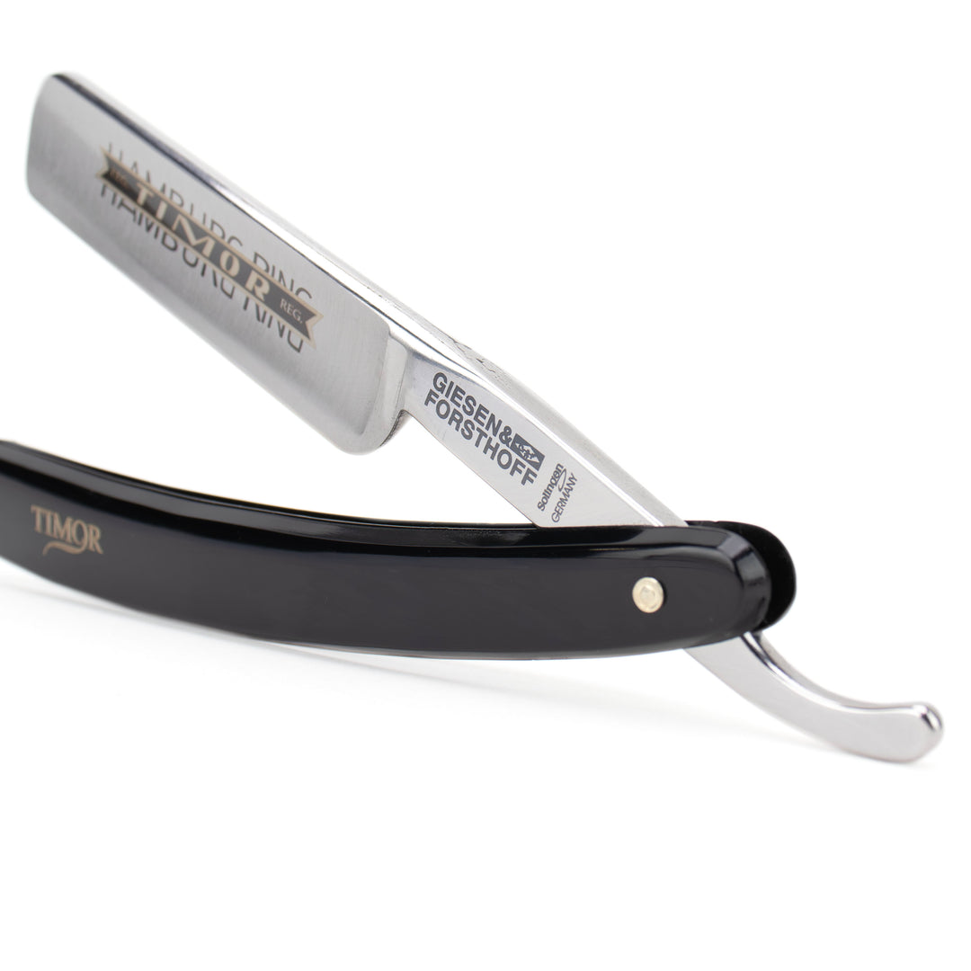 Elevate your shaving routine to a new level of opulence with the Giesen & Forsthoff ' Black Timor Straight Razor. The blade of this exceptional razor is forged from carbon steel, renowned for its impeccable quality and durability. Burnished to perfection, it boasts unparalleled sharpness and precision, ensuring a smooth and... Read more