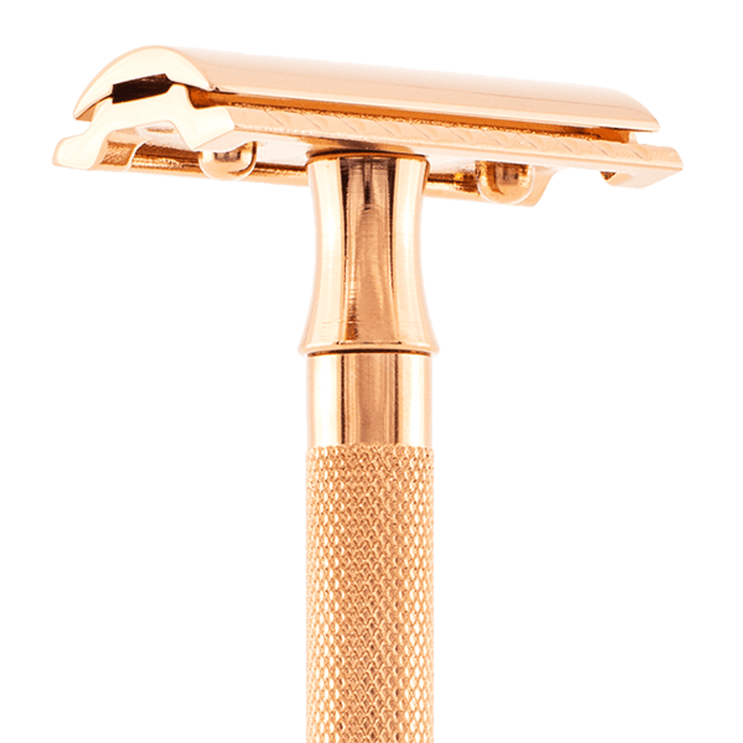 Merkur 24C Gold - Extra Long Handle The Merkur 24C GOLD is crafted to cater to both men and women, featuring a timelessly classic brass handle with diamond-shaped cross knurling for a secure grip, even with wet hands. Its extra-long handle facilitates effortless access to hard-to-reach body hair. Its razor... Read more
