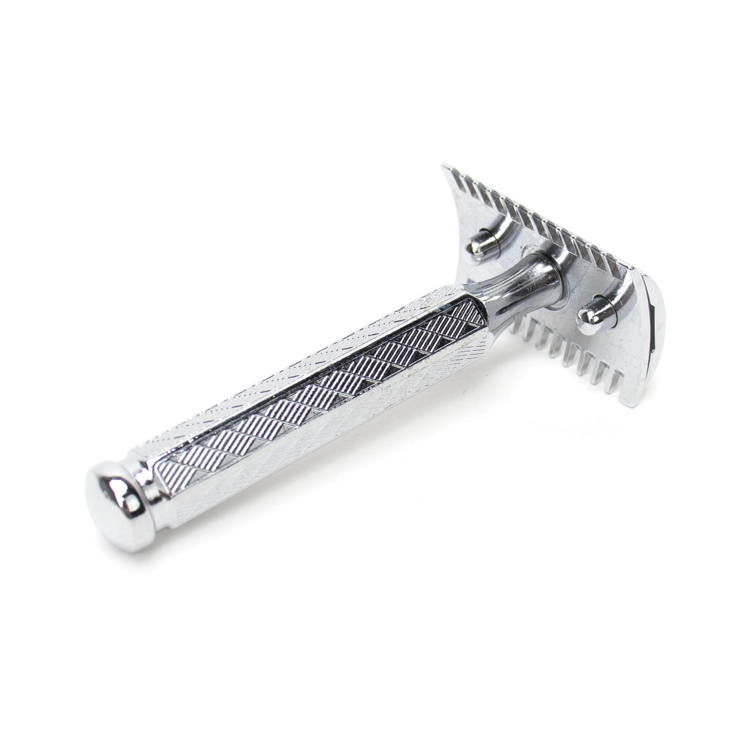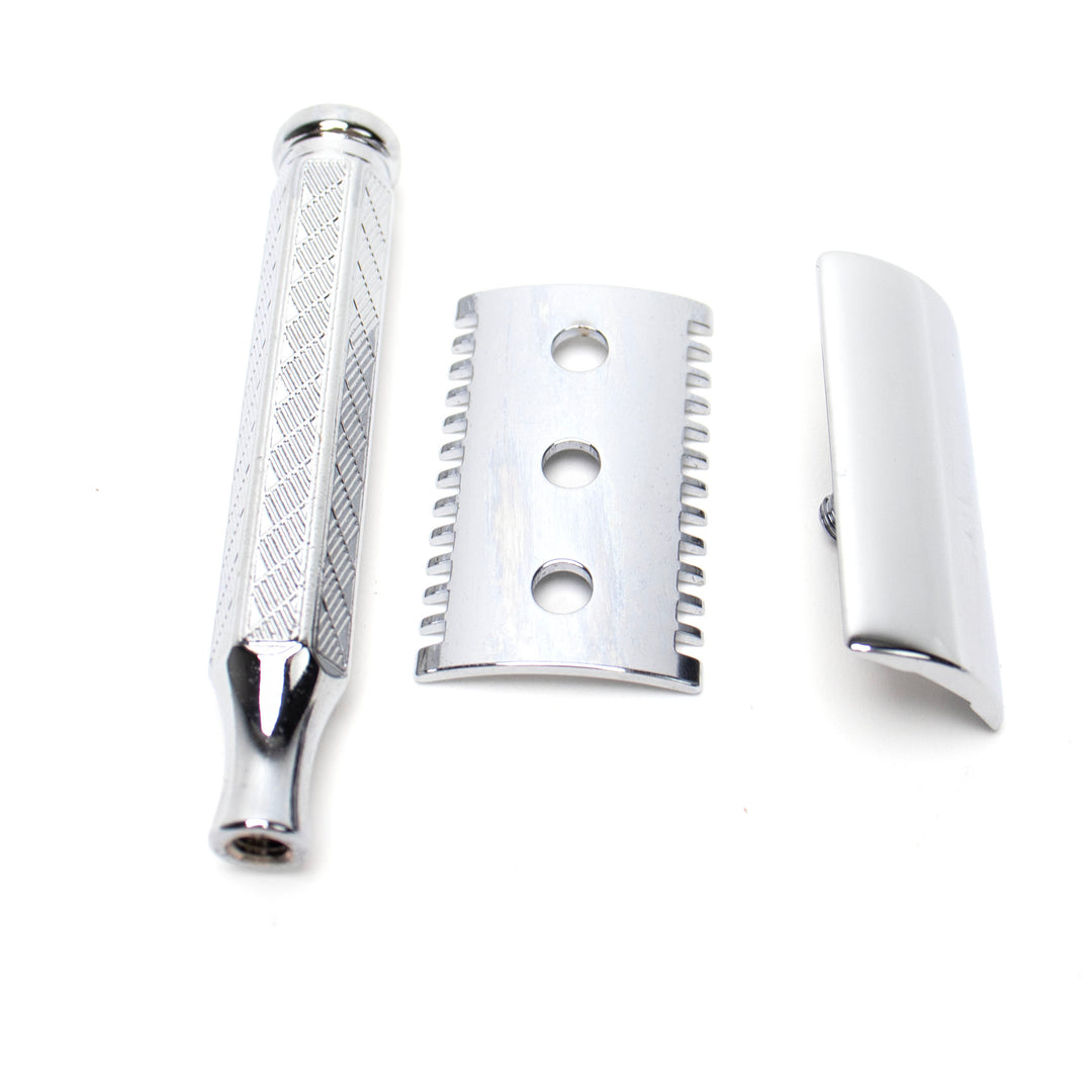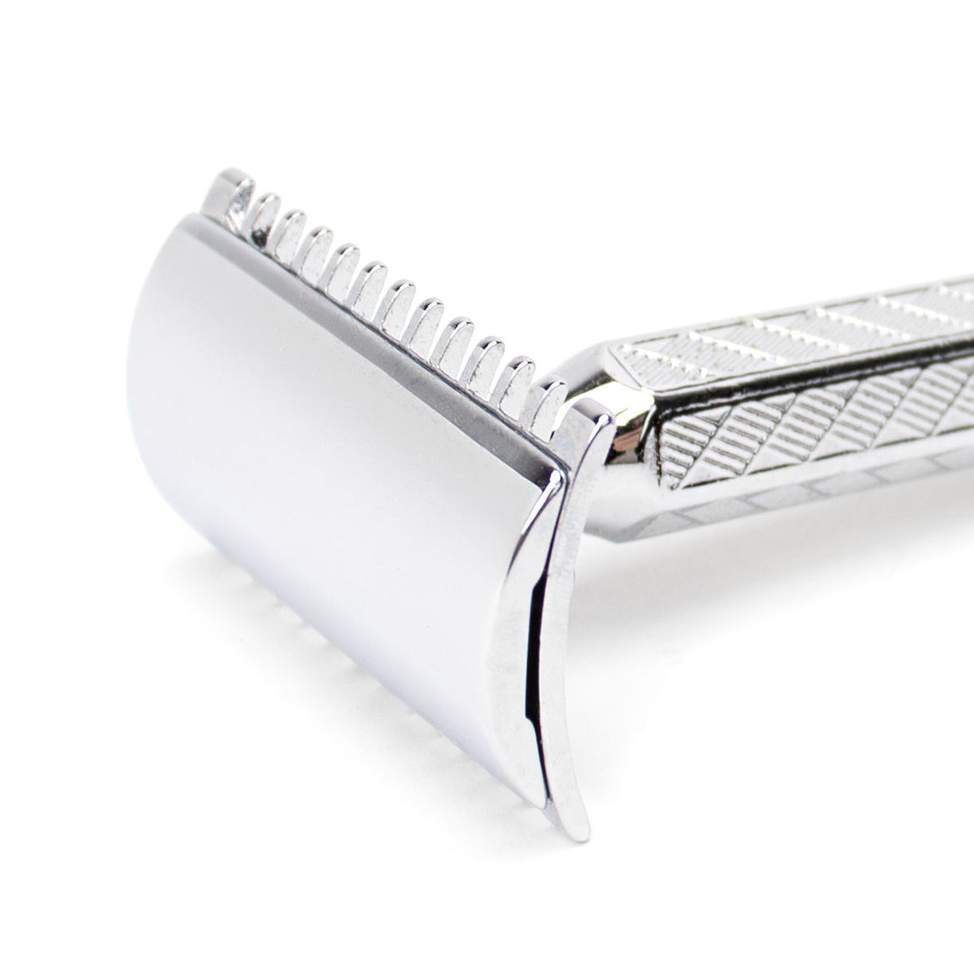 If you want a traditional double-edge safety razor, the Merkur 41C is a classic. It looks incredible with it’s hexagonal handle inlaid with a diamond design but works fantastically too. You can easily unscrew the head to change blades, and it has a comb to protect you from cuts and nicks. Read more