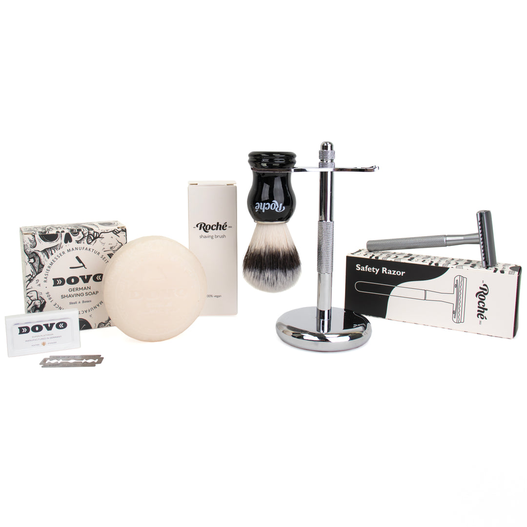 Experience the timeless art of wet shaving with this Roché Sandalwood Shaving Set!