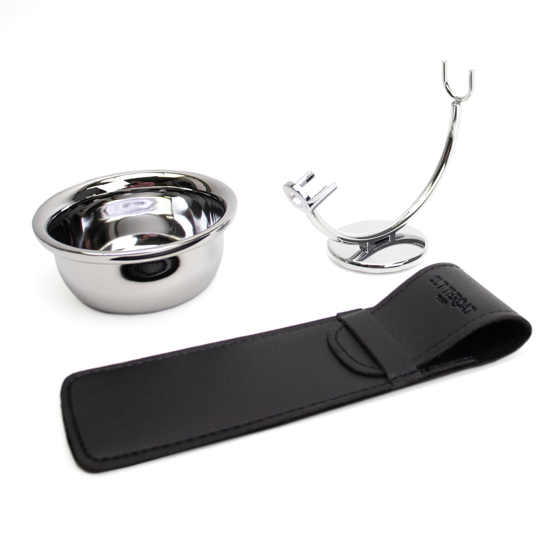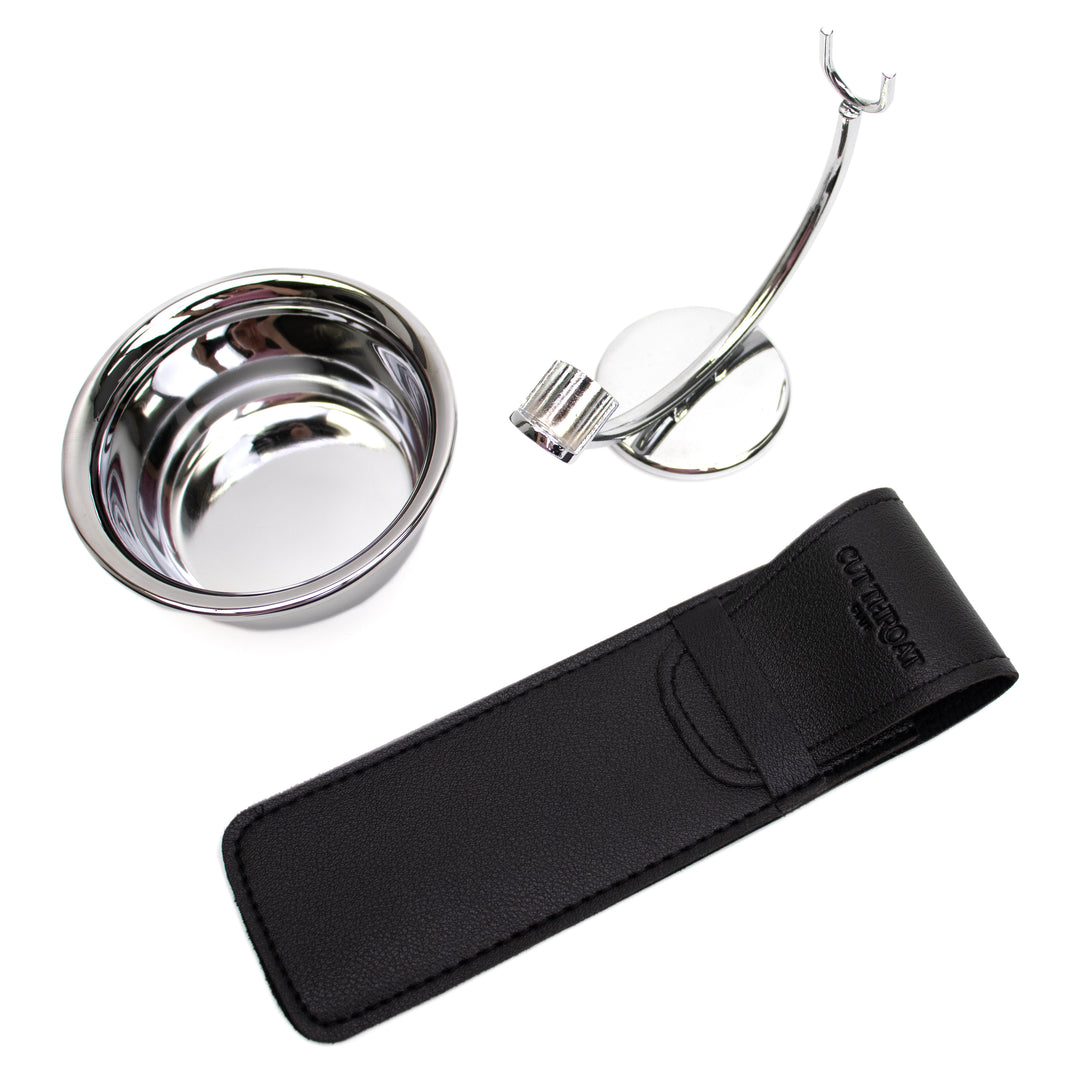 In this bundle... Chrome razor stand - Keep your razor organised and readily accessible whenever you need it. Black razor case - Whether on the go or at home, ensure the safety and protection of your razor. Stainless Steel Shaving Bowl - Your ideal companion for achieving a luxurious lather with your preferred shaving cream or soap. *Razor not... Read more