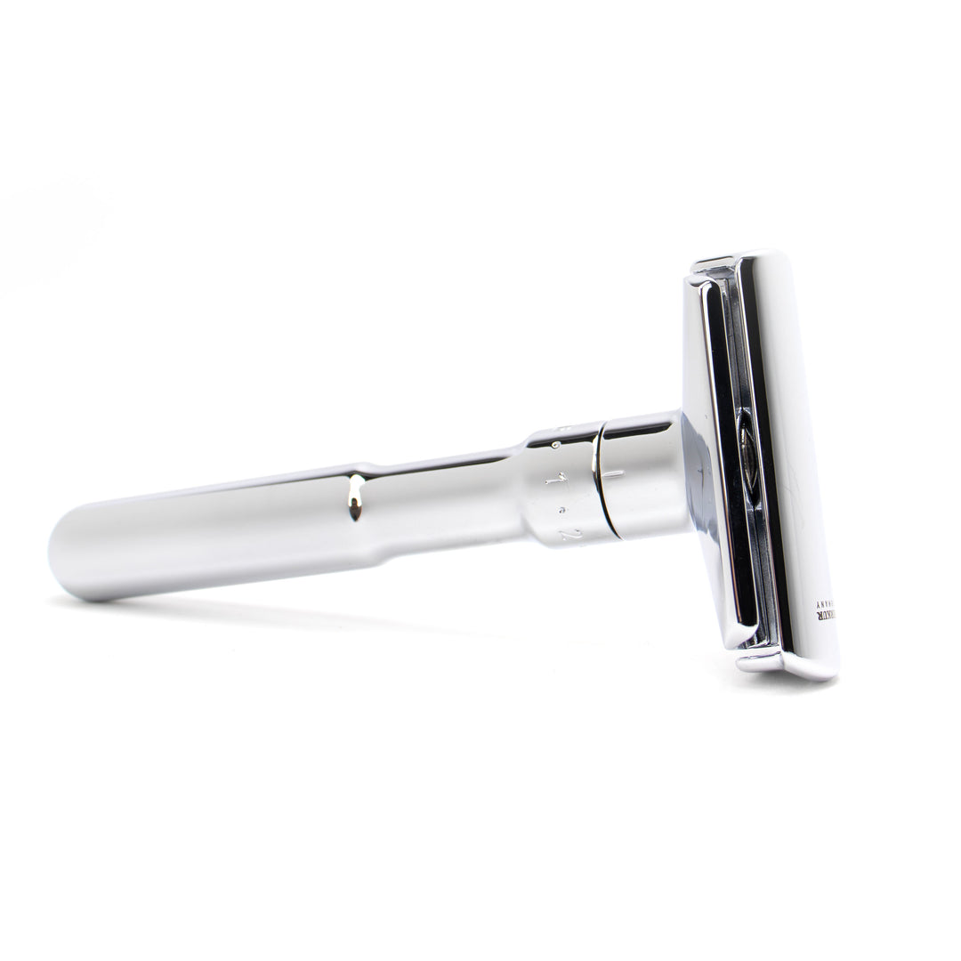The Merkur Future double edge razor is a work of art and also highly functional. This model is finished in a fantastic, polished chrome plating, but it is also available in a mat chrome finish, or even in 24k gold plating. Aside from looking great, this Futur safety razor has... Read more